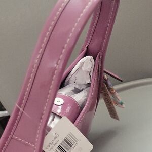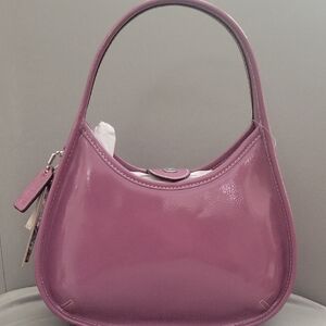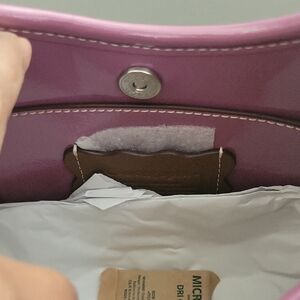 Chic patent leather Coach in lilac perfect for daily use. Adds a pop of color to any outfit.