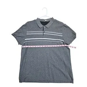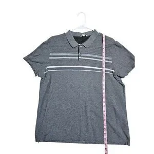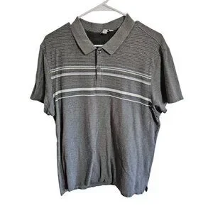 Calvin Klein Mens Large Gray Striped Polo Shirt Cotton Casual Preppy Classic Y2K
