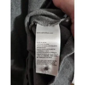 Calvin Klein men’s polo shirt in gray with horizontal stripe detail across the chest. 100% cotton fabric with classic short sleeve design. Clean minimal everyday casual staple.