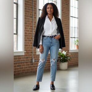 Madewell /Women’s Light Blue Distressed Straight Leg Jeans/ THE MOMJEAN /Size 27