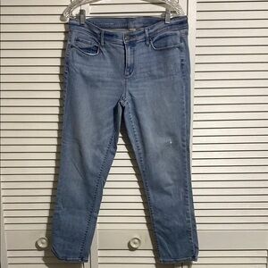 Euc!! Loft modern cuffed crop ! Stylish and comfortable women's crop jeans perfect for any occasion. Light wash with some distressing! These jeans offer a classic fit and versatile style.