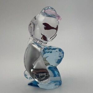 This cute crystal figurine by Swarovski recreates one of the famous Four Beauties of China, Xi Shi, in crystal brilliance. Depicted in clear crystal, accentuated with attractive shades of blue and beige, Xi Shi stands demurely with a bamboo basket and a piece of silk in hand. This graceful figurine shimmers and sparkles with 113 facets and makes an excellent gift for collectors and loved ones.