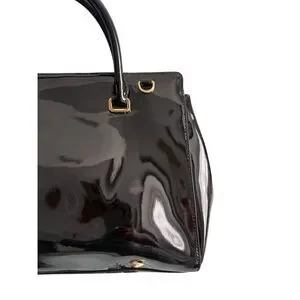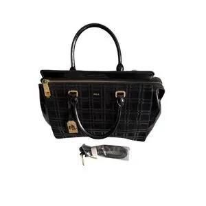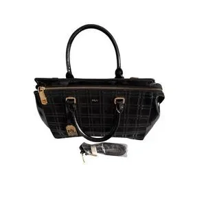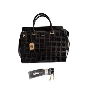 Lauren Ralph Lauren Womens Black Patent Leather Crossbody Satchel Bag Large