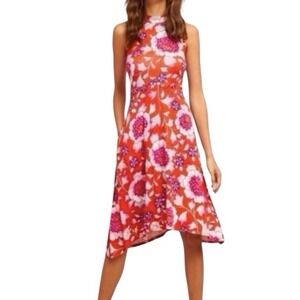 Maeve Anthropologie Cleary Orange Floral Stretch Asymmetrical Dress XS Stretch