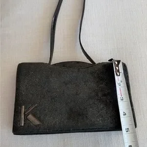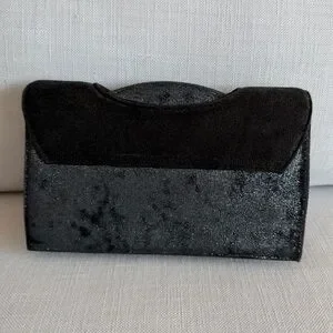 KRIZIA Vintage Y2K Black Gunmetal Shimmer Evening Clutch Made in Italy