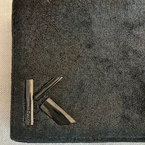 Vintage KRIZIA evening clutch from the early 2000s, Made in Italy, featuring a gunmetal shimmer finish with black undertones and signature gunmetal โKโ hardware.