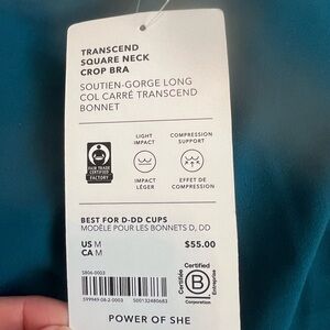 Athleta crop bra with square neck design. Beautiful teal color. Size M. New with tags, in perfect condition.
