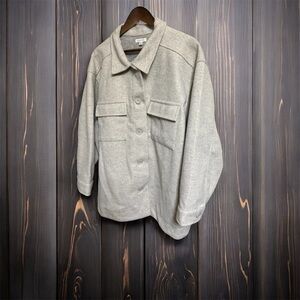 ❀ Max Studio Shacket (shirt jacket) in the color, Beige. Oversized collared, long sleeve jacket with a button up front! Has button cuffs and two flap chest pockets. Easy for styling and keeping warm!