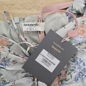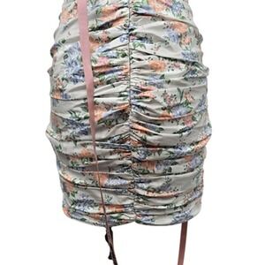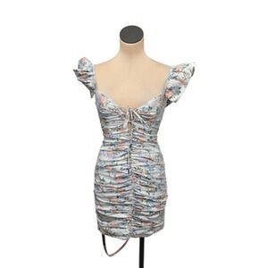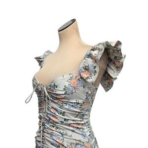 House of CB Mini Dress Womens Small Floral Kara Ruched Ruffle Sleeve Lace Up