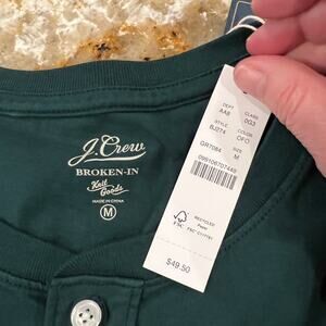 NEW WITH TAGS - RETAIL $50 - This J. Crew Men's Old Forest Green Broken-In Henley Shirt is perfect for any occasion. Specially washed for softness and a broken-in appearance, this henley looks and feels like the well-worn favorite you had in college. 100% cotton. Long sleeves. COLOR is Old Forest Dark Green Rib trim at cuffs. Machine wash.
