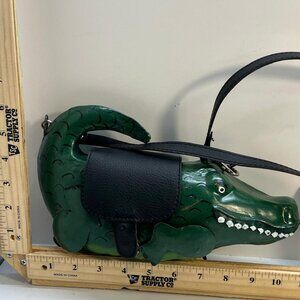 Vintage Alligator Shaped Handbag Green Crocodile Purse Novelty Bag Leather Strap