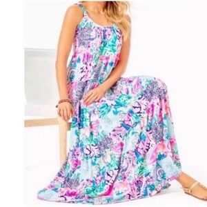 Lilly Pulitzer Loro Patch-to-Match Tiered Cotton Pink Maxi Dress women's size XS
