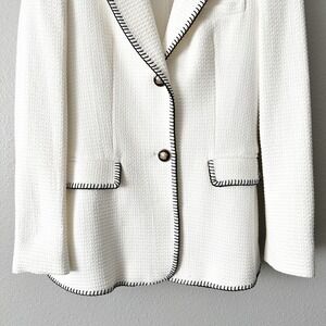 Zara White Textured Tweed Blazer Black Contrast Stitching Gold Buttons Size XS