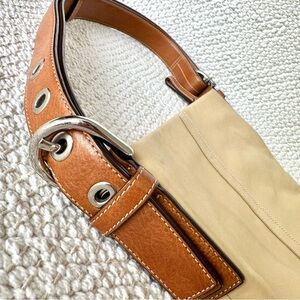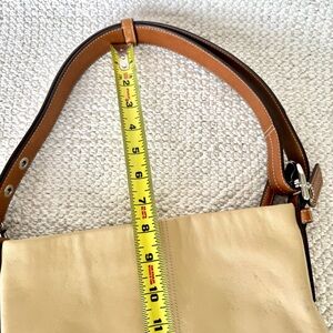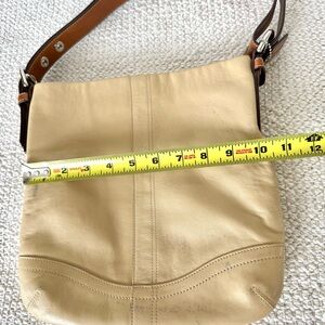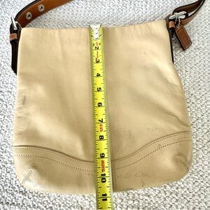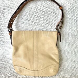 Coach Cream and Brown Shoulder Hand Bag with Classic Soft Side Leather