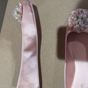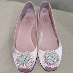 Elegant pink flats by Kate Spade featuring a beautiful pearl embellishment. Perfect for adding a touch of sophistication to any outfit. these are ballet flats that come from a smoke-free home. the soles are leather. Warren once or twice as you can tell from the bottoms. they are a little too small so I'm going to seek out another pair they're a little larger. I listed about 100 pairs of shoes so please bundle up for discounts. these are awesome shoes.