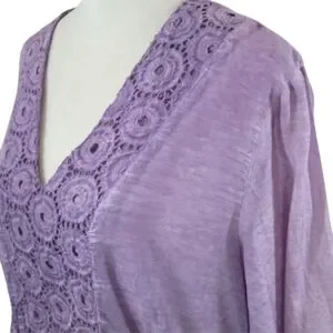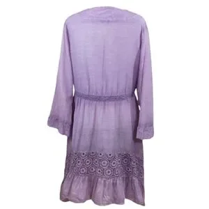 dress asymmetrical dress silk lavender lilac purple eyelet embroidered flowy tunic flounce flouncy ruffled boho bohemian peasant gypsy hippie festival cottagecore bias cut silk charmeuse collared shift tunic dress jewel toned ruffled lace sleeves floral fringed hem bias cut silk column puff sleeves drop waist lace panel deep v-neck draped