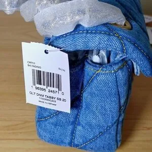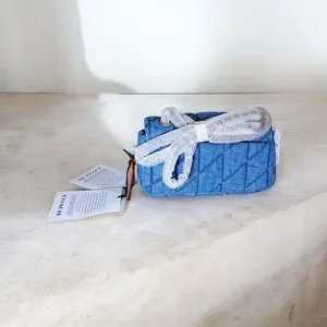 Stylish denim quilted shoulder bag with a chic gold chain. Perfect for adding a trendy touch to any outfit.