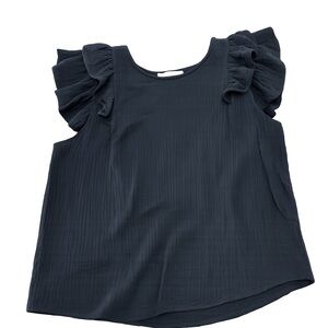 Stylish black top with ruffled sleeves. Perfect for any occasion.