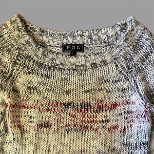 POL Gray and Red Knit Boatneck Sweater, Size Large.