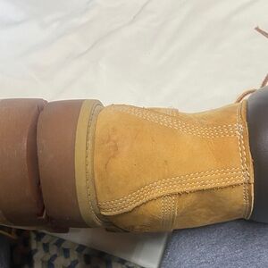 Classic Timberland boots for kids. Sturdy leather design. Perfect for outdoor play.these are in good condition pictures are available for review . A few marks on the boots as you can see. No reasonable offers refused