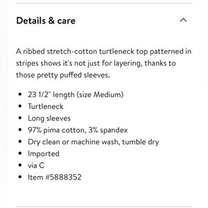 NWOT Veronica Beard Cedar Striped Puff Sleeve Multicolor Turtleneck Sweater