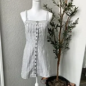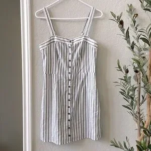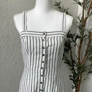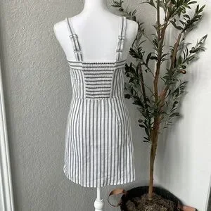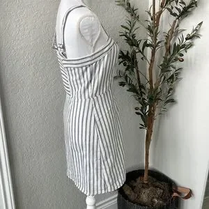 Ivy + Main Classic Striped Linen Blend Striped Button Front Dress Size Medium