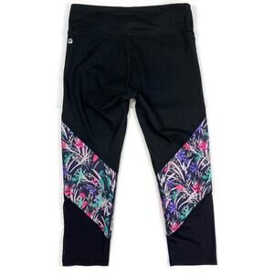 Fabletics Mid Rise Powerhold Leggings Mesh Black Floral Capri with UPF 50+ Womens Size Small