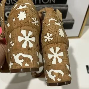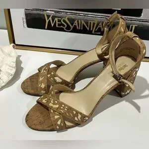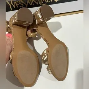 Coach Beige Floral Block Heel Sandals Ankle Strap Sandals Size 9.5 block