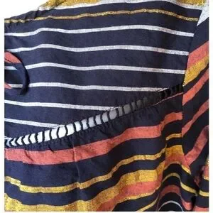 Striped long sleeve crew neck top by Crown & Ivy tie at neck slip over design boho chic sleeve hem is elastic gently loved