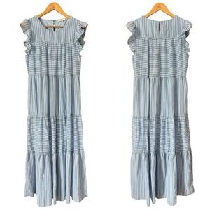 Entro Tiered Striped Maxi Dress Tired Sleeves Small Cottagecore Boho Preppy