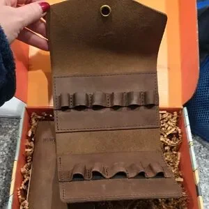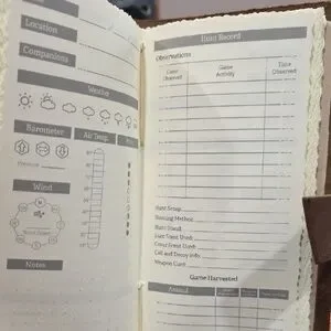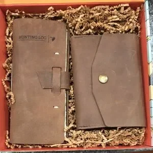 Elevate your outdoor experience with this elegant brown leather hunting log and wallet set. Designed for style and functionality, it's a must-have for any enthusiast.