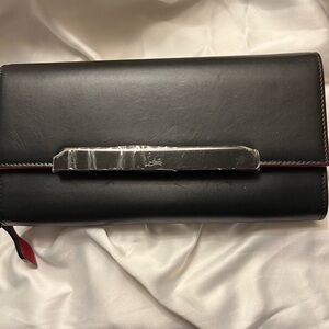 Christian Louboutin Black Leather Wallet and crossbody. Strap is still in original bag and plastic covers the metal on the front. Never used. Brand new with tags. ROUGISSIME Calfskin leather WALLET STYLE 3145147