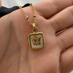 Anthropologie Swell Gold Square Butterfly Pendant Necklace