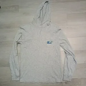 Vineyard Vines Grey Hooded Tshirt Long Sleeve Car Tree Camping Outdoor XS