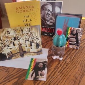 Black History Bundle ~ Malcom X Amanda Gorman Books Bob Marley Cards Lady Head