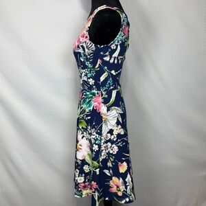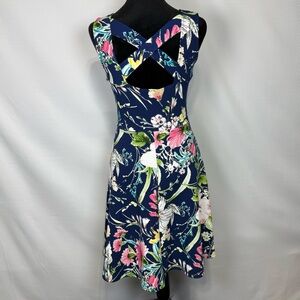 Gilli Floral Sleeveless Dress Cut-out Strappy Back Fit & Flare SMALL Navy & Pink