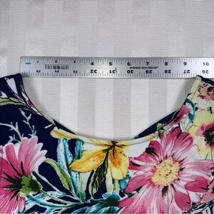 Color: Dark navy blue with beautiful multicolor floral pattern