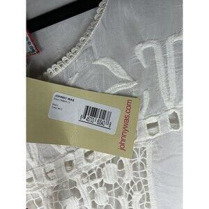 Johnny Was NWT White Embroidered Tunic Blouse 3/4 Sleeve Boat Neck Large