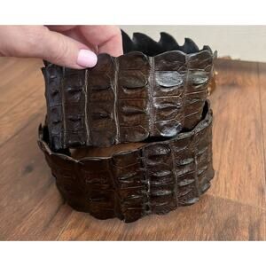 FIBEL Women's Vintage Italy Genuine Crocodile Ornate Large Buckle Belt 36"