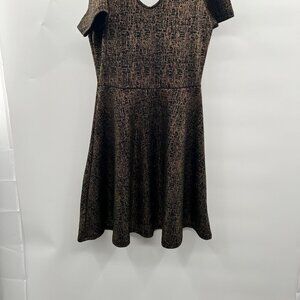 Rolla Coster Women's Short Sleeve A-Line Dress Black/Gold Size Small Above Knee