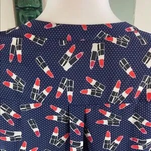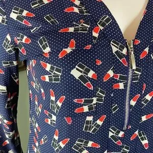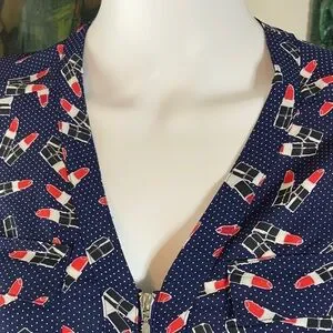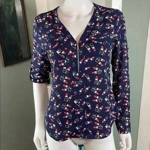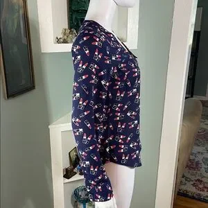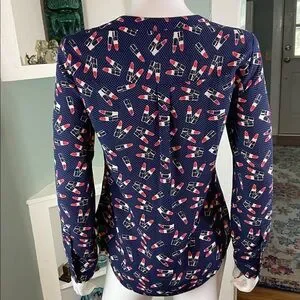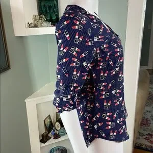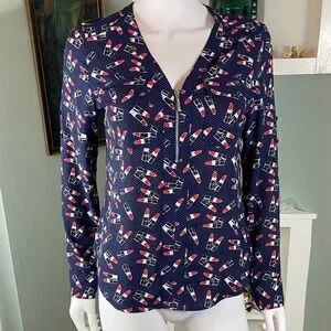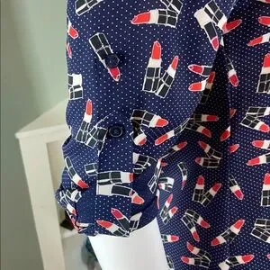 NWT New Express Novelty Navy Blue Lipstick Women's Top shirt blouse xs XSmall
