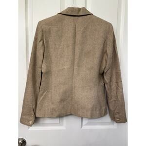 Signature by Larry Levine blazer size 6 wool blend tan beige brown blazer gold speck satin lining. Step out in sophisticated style with this gorgeous Signature by Larry Levine blazer! Perfect for adding a touch of elegance to any outfit, this wool blend blazer is a fantastic find.