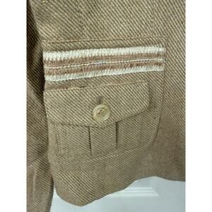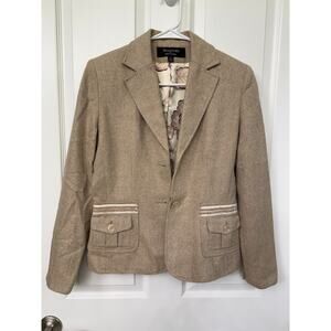 Signature by Larry Levine 6 wool blend tan beige brown blazer gold speck satin