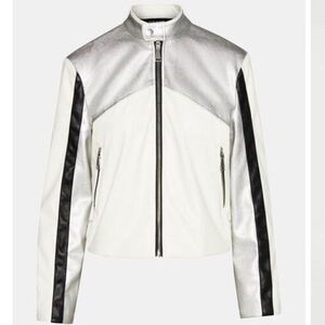 Steve Madden Helayna Faux Leather Silver/cream/black Moto jacket size small
