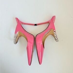 Jimmy Choo Candy Pink Patent Leather Bing 100 Crystal Embellished Mule pumps 38