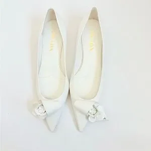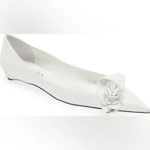Prada White Leather Loop Bouquet Pointed Toe Ballet Flats EU 39 US 9