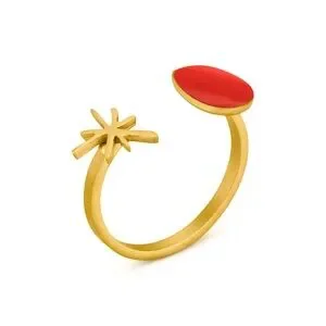Elevate your everyday with this Joan Miró Gold-Plated Dot & Star Cuff Ring by Joidart, a family-owned jewelry brand celebrating their 40th anniversary. To help mark the occasion, they collaborated with Successió Miró on an exclusive collection that pays tribute to the famed Spanish artist. This open ring references the 1972 painting Femme devant le soleil and features an irregular circle in red enamel alongside a 24k gold-plated star in Miró’s signature shape. Wear it to add a subtle statement or pair it with coordinating earrings to create more impact. Each piece is conscientiously and locally made at a small factory in a mountain village in Spain using traditional artisanal techniques.