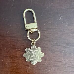 Add a touch of charm to your accessories with this delightful gold and blue flower keychain. Perfect for adding a pop of color to your keys or bag.
