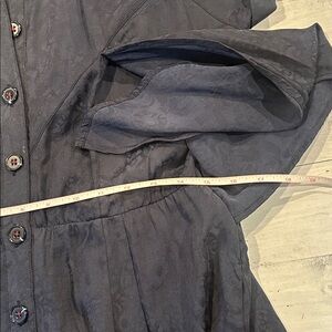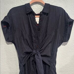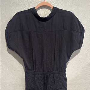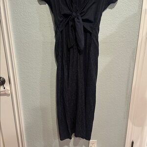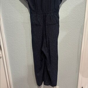 Stylish navy jumpsuit. Button-down front, elastic waist, two side pockets and tie-waist detail. Short sleeves. Measurements and fabric info in pictures♥️ measurements in pictures and Length 54”