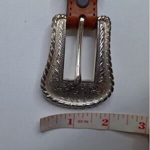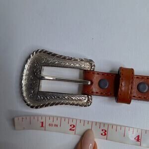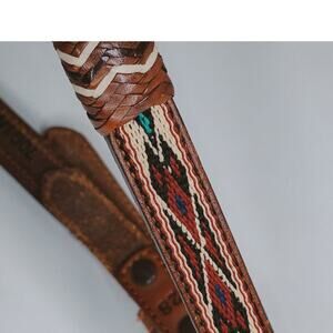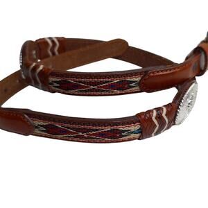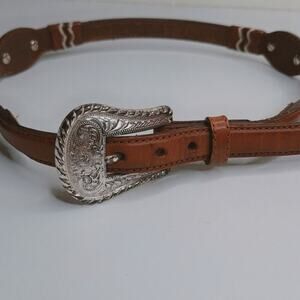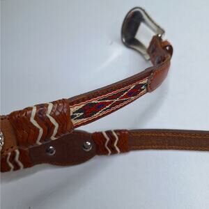 Vintage Justin Concho Western Belt Women's 28 Leather Woven Silver Southwestern